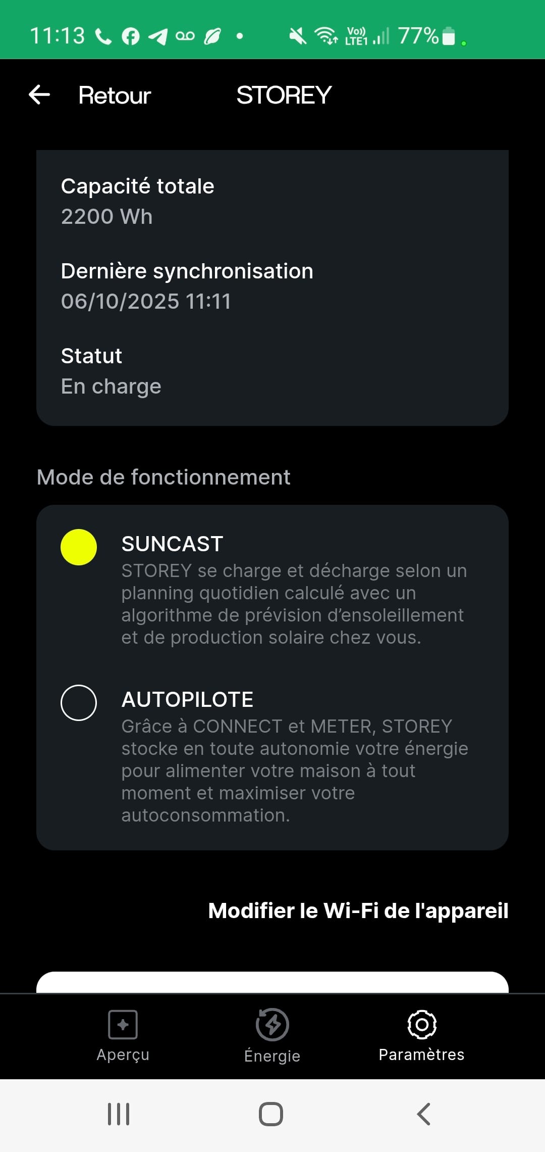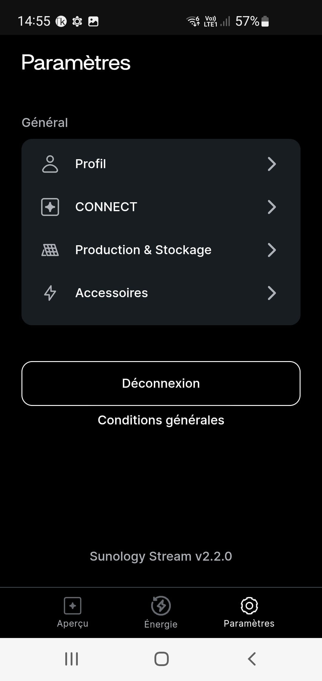 Le pilotage de la charge et de la décharge de la batterie se fait actuellement par l'application smartphone STREAM et pas encore par l’intégration Sunology de Home Assistant (c'est prévu m'a dit le développeur de Sunology).