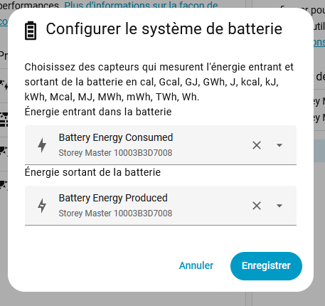 J'ai intégré Battery Energy Consumed et Battery Energy Producted