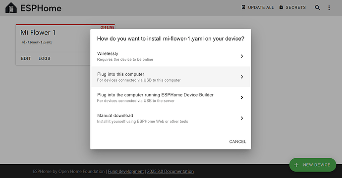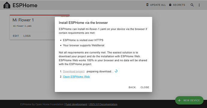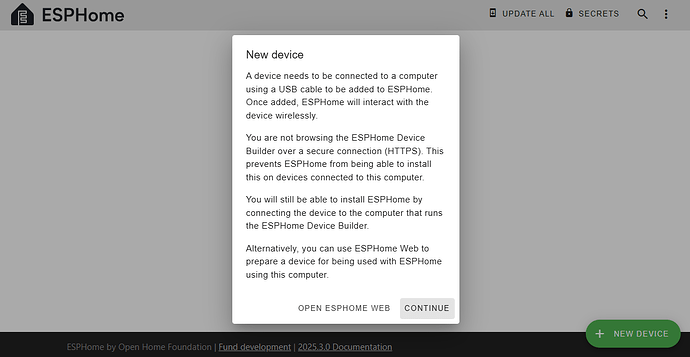 Pour ceux qui sont sous HA container (docker), vous devrez installer ESPHome dans un nouveau conteneur.