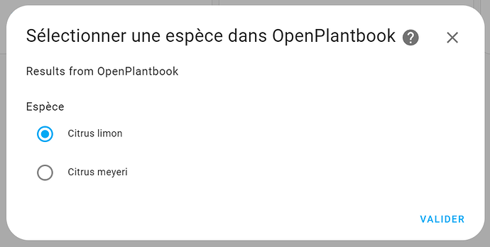 Valider, il recherche et propose différents choix. Je choisis Citrus limon :