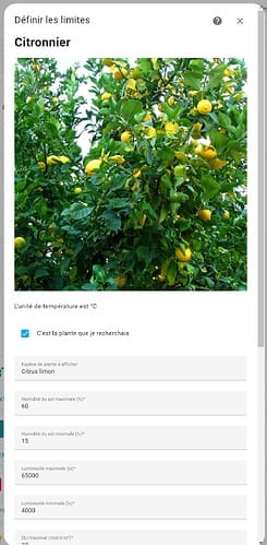 On peut ajouter toutes les plantes que l’on souhaite. C’est un peu fastidieux, il faut avoir les noms scientifiques en anglais de nos plantes. Mais une simple rechercher Internet te permettra de trouver les noms adéquats.