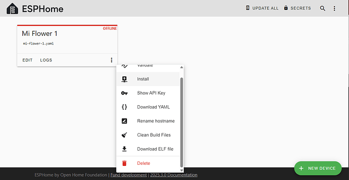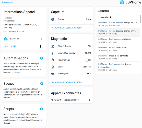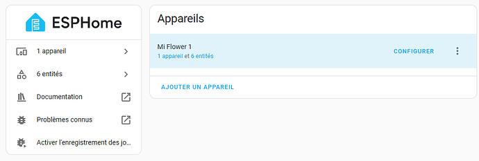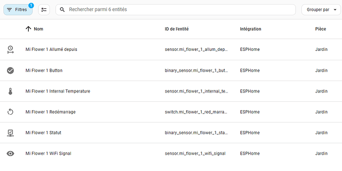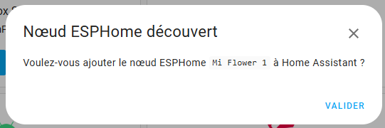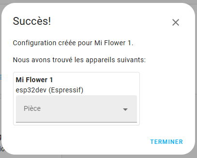 Pour ce tutoriel, on choisit Mi Flower 1. Plus tard, un autre ESP32 pourrait être ajouté avec un nom Mi Flower 2 permettant de les identifier mais vous pouvez mettre ce que vous voulez.