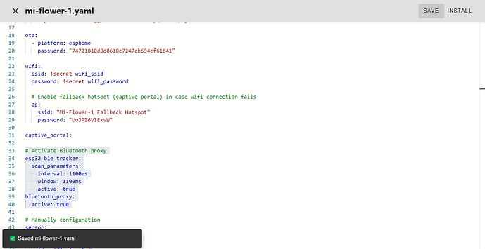 Pour activer le Bluetooth proxy, il faut ajouter les lignes suivantes :