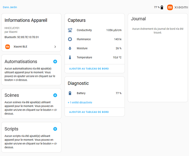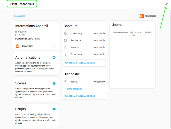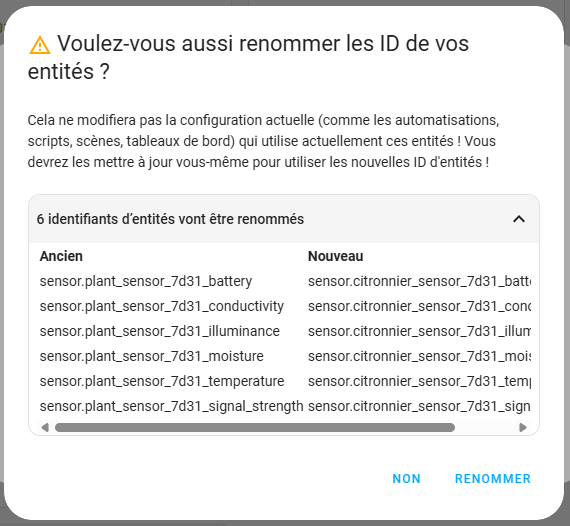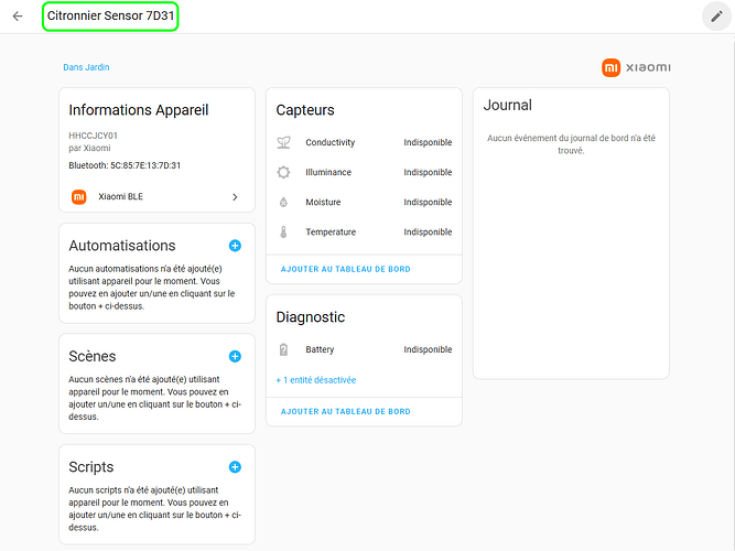 Le problème peut se poser aussi si on change le Xiaomi Mi Flower par un autre (par exemple un petit par un grand lorsque la plante pousse ou si le capteur devient HS).