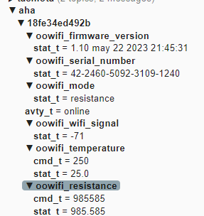 On peut vérifier avec MQTT Explorer que le Ohmigo et ses paramètres sont bien accessibles :