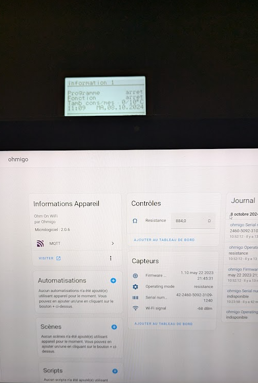 - On injecte manuellement des valeurs de résistance via l'interface Home Assistant