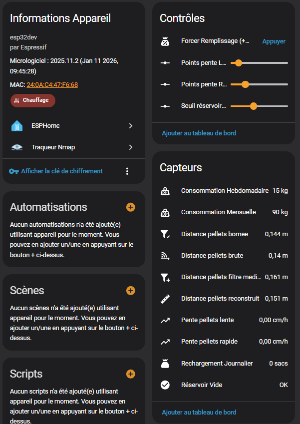Maintenant que le module Ohmigo est relié au poêle et intégré à Home Assistant, il faut définir la façon dont il va agir et envoyer des informations corrigées au poêle via les instructions reçues depuis home Assistant.