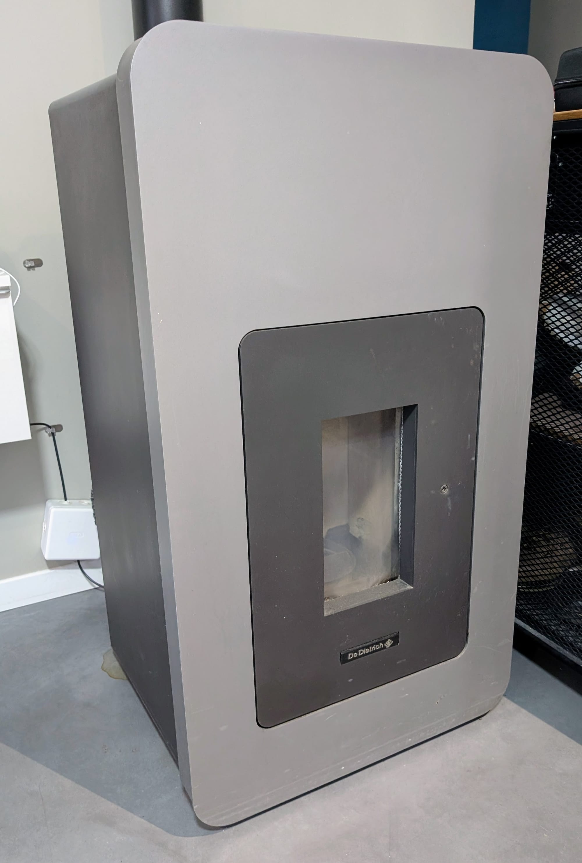 Le chauffage de la maison est assuré par un poêle à granulés de 8 kW, de marque DeDietrich, modèle Quadralis (clone de Oertli OPPA8 qui est un haas+Sohn rebrandé), datant de 2012, et ne disposant d'aucun élément de connectivité (un module propriétaire a existé, mais en GSM, très peu répandu et introuvable).