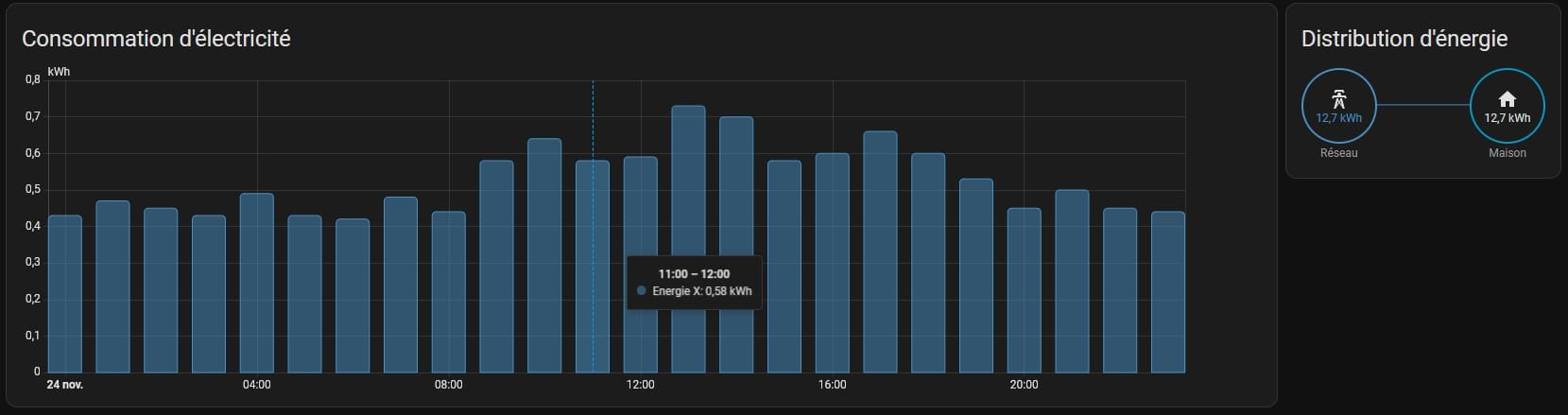 - Énergie Produite (Energy_produced) : Cette entité est dédiée au solaire. Si vous orientez votre pince vers l'onduleur, c'est ici que s'accumuleront vos kWh produits.