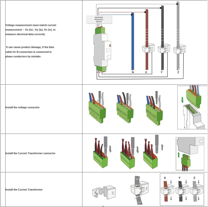 - Câble de section 1.5mm² largement suffisant pour la consommation du module, on récupère juste des informations qui ne "consomment pas" le reste passe par les pinces de mesure.