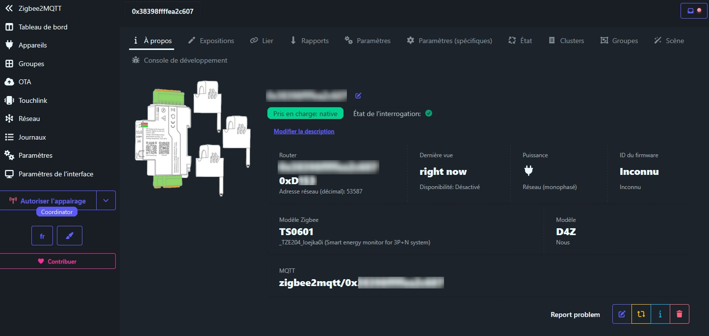 Pour ce test, j'ai fait le choix d'isoler le module sur une instance Zigbee2MQTT Edge secondaire (avec son propre coordinateur). Cela permet de profiter de la réactivité incroyable du D4Z sans polluer le réseau domotique principal. C'est le prix à payer pour avoir un suivi énergétique "temps réel" digne d'un équipement professionnel.