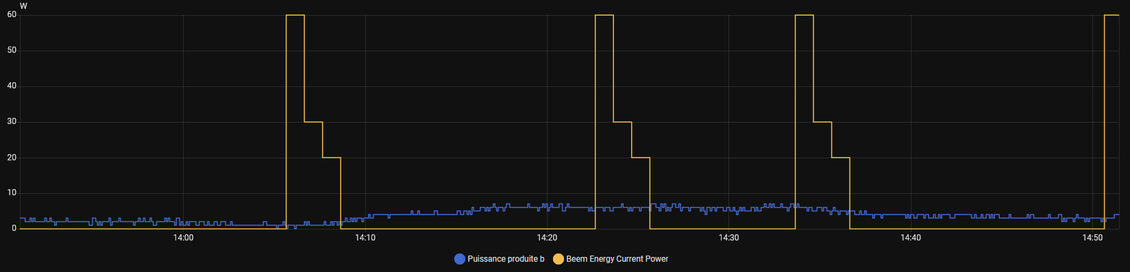 Sur ce graphique de production solaire, la différence est flagrante entre les remontées de la Beembox : là où d'autres systèmes "lissent" les données toutes les 5 ou 10 minutes, le D4Z dessine chaque nuage, chaque variation de luminosité avec une réactivité instantanée.